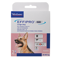 EFFIPRO DUO esta indicado en perros contra infestaciones de pulgas y garrapatas.